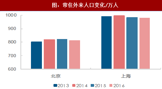 二、三线城市地产限购政策较为缓和,挤出效应使资金大概率流向二、三线等房价洼地区域,并且一线城市房价涨速持续高于二、三线城市,房价差异仍在进一步拉大,最终或导致人口向二、三线城市迁移。从数据上来看,北京和上海外来人口呈现下滑趋势,2016年回落至近四年最低;本地农民工和外出农民工变化趋势同样印证了上述观点。