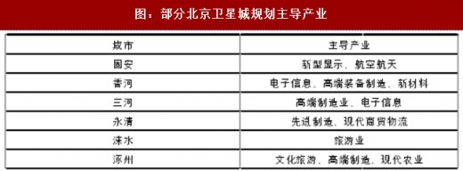 图:部分北京卫星城规划主导产业