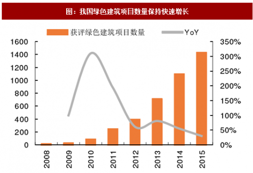 受我国政策持续趋严影响,近年来我国大力推动绿色建筑发展。绿色建筑是指在建筑的全寿命周期内,最大限度地节约资源(节能、节地、节水、节材),保护环境和减少污染,为人们提供健康、适用和高效的使用空间,与自然和谐共生的建筑。目前我国城乡建设的增长方式依然粗放,发展质量与效益不高,建筑建造和使用过程能源资源消耗高、利用效率低的问题比较突出。因而大力发展绿色建筑,能够最大效率地利用资源和最低限度地影响环境,转变增长方式,缓解资源约束。