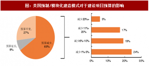 借鉴美国,在技术发展成熟的情况下,装配式建筑的建造成本现浇结构更低。从项目造价方面看,有65%的项目在运用预制/模块化建造技术后实现了造价的下降,27%项目造价维持不变,8%的项目造价有所提高。在实现项目造价下降的项目中,降低超过20%/降低11%-20%/降低6%-10%/降低1%-5%的项目占比分别为5%/17%/19%/24%。