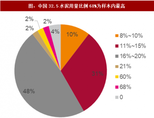 此外,从国际先进经验中也可论证淘汰低标号水泥的趋势性。根据中国水泥网对2014-2015年48个国家水泥行业的统计,32.5水泥用量占比为8%~10%的有5个国家,即美、荷、科威特、阿联酋和埃及,占比为11%~15%的有15个国家,即英、日、加拿大、韩等,占总数的31.5%,占比16%~20%的有23个国家,而中国占比最高,达68%。其中,美国、欧洲、日本等发达国家占比基本低于20%。