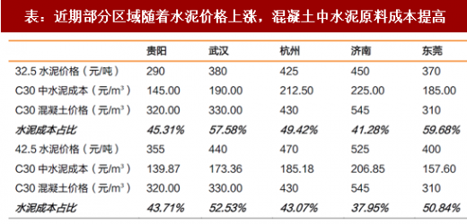 12月4日,武汉混凝土协会发布“紧急报告”中提及9月以来水泥上涨约150-200元/吨,黄沙上涨约30元,青石上涨约10元/吨。原材料价格大幅上涨导致预拌混凝土(砂浆)价格剧烈波动,供应矛盾日趋严重,甚至出现有价无市现象。因此请求各个部门重视并干预混凝土原材料,尤其是水泥的无序暴涨乱象。12月5日,贵州预拌混凝土行业协会也发文表示为支持“大扶贫”工程项目建设,严禁水泥、混凝土等主要建筑材料产品趁势涨价,价格不得高于《贵州省工程造价信息》发布的市场参考价格的5%。对此,12月7日,中国水泥协会表示:当前的水泥价格依旧处于合理区间。根据协会公布数据,全国水泥平均价从2月的327元/吨上涨至12月初的392元/吨(不含西藏),涨幅近20%。但不同地区供求关系出现较大差异,少数个别地区价格短期涨幅较大。