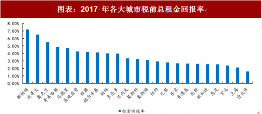 发达国家住房长期投资回报率较高。房价和年租金的比值可以表示投资房屋用于出租的资本回收期。2017 年中国大陆的回收期基本高于大部分的国家和地区,就国家的大城市而言,租金回报率普遍在 2.5%到 5%之间,上海的回报率(2.1%)基本低于大部分国家的大城市。