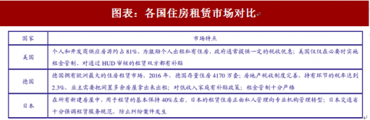 通过对各国租赁住房政策的简单梳理,可以总结出成熟租赁市场必要的几个条件。一是供应主体上以市场为主。因此各国在租赁市场发展后期都逐渐由私人业主或者专业机构提供租赁住房。我国还处于租赁住房市场的初步发展阶段,应该由政府、国企带头兴建租赁住房,以形成示范作用,后期再逐步回归监督职能。二是完善的租赁政策体系。政府借助市场力量增加租赁住房供给的同时,逐步建立完善的租赁政策法律体系,我国尚未有相关较完善的政策法律,但是政府提出的租赁住房指导性文件已精准地概括了国际成熟租赁市场的这几个要点,在未来可以预计我国将逐渐由政府引导,建立和完善租赁住房市场。