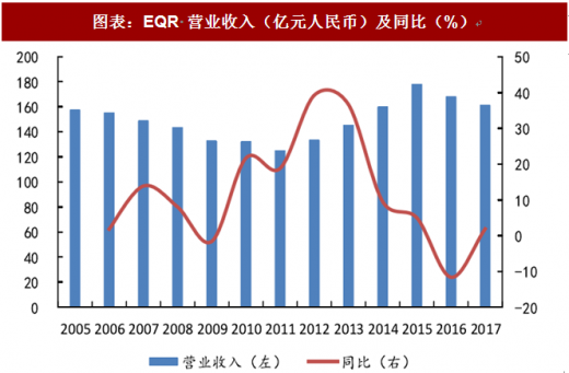 图表:eqr 营业收入(亿元人民币)及同比(%)