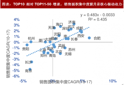 图表:top10 相对 top11-50 增速,销售面积集中度提升是核心驱动动力