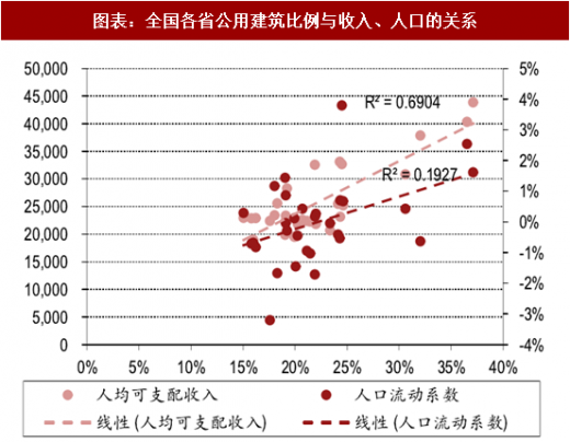 人口流动从数量上,消费升级从质量上推动公装需求:公装行业装修涉及酒店、办公楼、商业地产、医院、学校等。城市人口越多、经济越发达,教育医疗等资源以及消费需求也越丰富,催生更多公共建筑需求。因此人口流入将从数量上推动公装需求,而收入水平将从质量上推动公装需求。参考观研天下发布《》