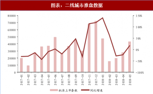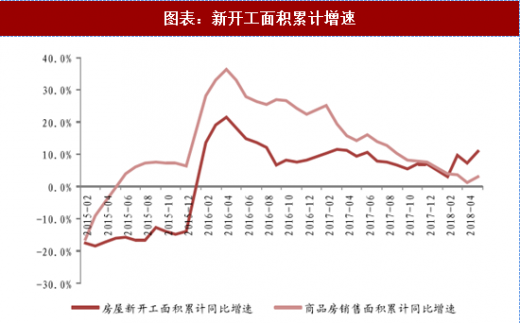 我们以批准上市套数作为衡量推盘情况的标准,有推盘统计的热点城市在今年无论同环比,推盘速度均处于明显回暖。从另外一方面,统计局房地产新开工数据也能得到验证,新开工面积在今年上半年,在销售数据表现相对一般的情况之下,新开工面积累计增速维持持续增长。