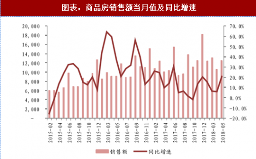 今年 1-5 月,房地产开发同比增速 10.2%,增速比 1-4 月份回落仅 0.1 个百分点;销售方面,全国商品房销售额同比增速 11.8%,增速提高 2.8 个百分点;商品房销售面积同比增长 2.9%,增速比 1-4 月份提高 1.6 个百分点。在居民去杠杆以及房住不炒的大背景之下,房地产行业却体现出极强的韧性。参考观研天下发布《》