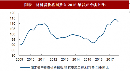 图表:电料和建筑化工材料价格2016 年以来持续上涨