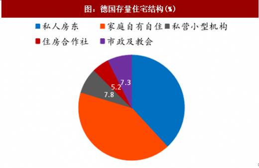 根据德国联邦统计局2014年普查数据,德国有49.3%的人口居住在租赁住房,50.7%的人口住在自有住房,住房自有率只有45.5%,远低于其他欧盟国家的平均值(约70%)。此外,租赁住房的供给以私人部门为主,政府以及教会提供的租赁住房只占住宅总量的7.3%。
