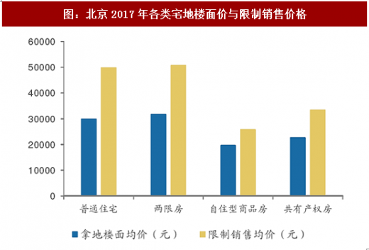 以北京为例,量的方面,北京宅地出让总规模大幅增加,17年1-10月宅地总建面规模超过前三年全年供地水平,建面达816万方,其中普通住宅438万方,占比54%,较16年全年提升5个百分点。从宅地类型结构上来看,17年1-10月自住型商品房、限价房(两限房)、经济适用房以及未来主要形成的共有产权房占比达36%,由于共有产权房以及自住型商品房的大量供应,政策性住房较16年相比提升23%,而政府持有的公租房以及企业自持部分占比仅占10%。