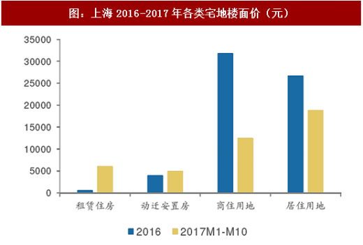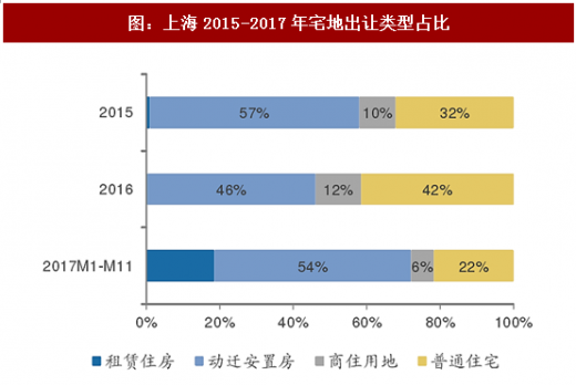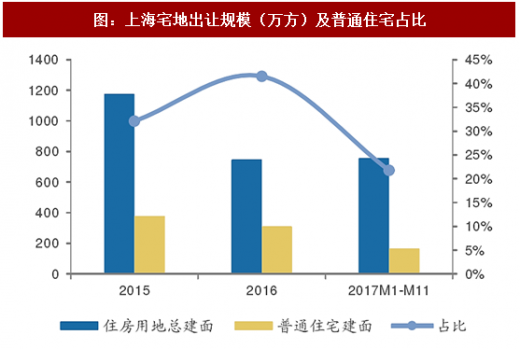 上海的情况略有不同,根据wind中国土地大全数据,上海17年宅地供应量已超过去年水平,事实上,动迁安置房与商住用地出让比例近三年变化不大,而普通住宅占比由16年44%降至22%,其原因是新增供应大量租赁住房用地,17年上海供应租赁住房用地17幅,总建面139.9万方,楼面均价6037.85元/平米。由于租赁用地加快入市以及同样单价较低的动迁安置房比例的小幅提升,整体来看,上海市17年整体宅地供应规模增加的同时,出让楼面价下滑56%。