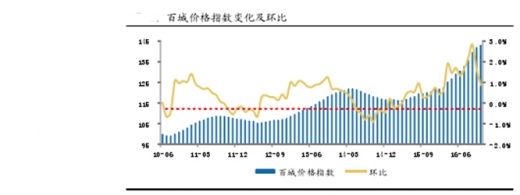 房价方面,库存总量下行,去化加快的背景下,16年房价环比持续上涨,全年累计上涨17%左右。但进入四季度,在需求回落同时地方政府限房价的影响下,房价增速逐步收窄,年末房价增速已收窄至1%以内。进入2017年,我们认为随着成交端的回落,库存将会再次抬升,房价也将由增速放缓进入环比下滑的通道。