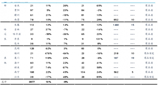 推盘方面,由于年末开发商实施跑量冲业绩策略,我们监控的29城市商品房及35城市住宅推盘量均延续11月的上行态势,环比分别上涨4.6%、9.3%,迎来了下半年的推盘高峰。库存和去化方面,12月绝对库存量在供需环比冲量中继续下行,我们跟踪的29城市商品房库存和35城市住宅库存分别环比下降0.6%、1.5%,而去化周期则保持稳定,12月份我们跟踪的29城市商品房去化周期(6月移动平均)和35城市住宅去化周期(6月移动平均)分别保持在14.9个月和7.8个月。全年来看,市场成交高位运行,导致重点城市住宅库存总量下行至历史低位,而去化周期也由年初的12个月左右下行至年末的7.8个月左右。