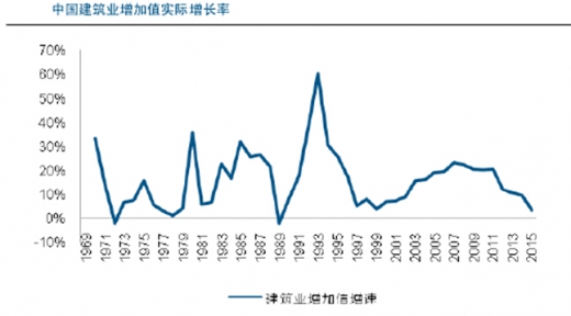 建筑业周期平均长度为 8-11 年,体现了朱格拉周期的典型特性。以建筑业总产值增长率波动周期作为建筑业行业周期划分依据,平均长度为 6.4 年。但若从反映建筑业真实增长的建筑业增加值角度来看,我们判断第三个周期可能是前一周期的延伸,这样平均周期长度大约为 8-11 年,恰好是朱格拉周期的长度。这一结论提供了两点启示:一是我国建筑业确实存在周期,二是这种周期和宏观经济景气度以及下游行业设备投资更新周期紧密相关。