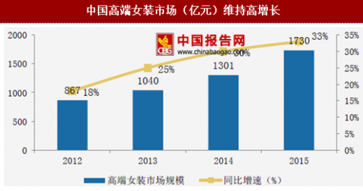 高端女装板块受益于消费观念转变,2015年同比增长33%,维持高增长