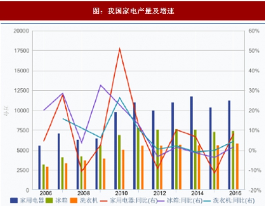 图:我国家电产量及增速