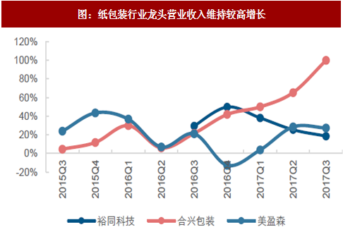 此外,两大因素正推动行业加速整合:1、稳定的包装交付能力。由于上游包装原纸受环保限产的影响较大,今年原纸短缺的问题频频发生,加大了纸包装企业对供应链的管理能力;2、资金周转能力。原材料(原纸)价格大涨以及备货期的延长加大对资金的需求,中小企业因资金周转的问题,供货能力有所缩减。综合上述两点因素,我们推测纸包装行业正步入整合期,具备较强综合供应能力的行业龙头将受益。