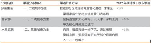 罗莱、富安娜以一二线城市为主进行门店的布局,直营和加盟门店并进,不断提升直营门店的数量,同时渠道逐渐下沉三四线城市以迎合三四线城市的消费升级。