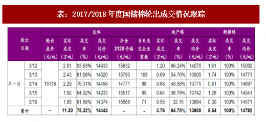 表:2017/2018年度国储棉轮出成交情况跟踪