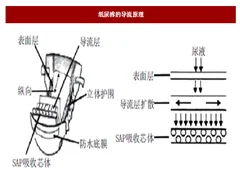 (2)导流层是置于表层与吸收芯层之间的一层特殊的非织造材料,它能够有效地帮助液体从表面层包覆材料向内快速传导并往纵向扩散分布,从而使液体很快离开使用者的肌肤,均匀地被芯层吸收,不致纸尿裤由于集中吸液而导致局部变厚,阻碍后续尿液被s a p吸收。