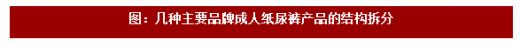 成人纸尿裤与婴儿纸尿裤基本相同,唯一不同的是由于成人失禁导致的排泄量多于婴儿,因此一些厂商在底膜和吸收芯层之间添加了一层吸水性卫生纸,从而达到增加纸尿裤的吸收量、增强防渗透能力的目的。