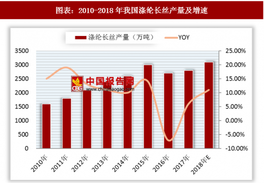 涤纶长丝占据了聚酯领域的半壁江山,2018年上半年产量同比增加达到11%,很大程度上推动了2018年的景气市场。考虑到下半年还将迎来纺织服装业九、十月份的黄金旺季,我们预估涤纶长丝的火爆将得以持续。全年增长率将在10%以上,带来约290万吨的新增聚酯需求。