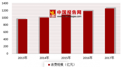 近年来,受益于社会经济的高速增长、 女性对个人健康意识的关注和提高, 农村地区消费市场不断发展以及城镇化,我国女性消费者的卫生巾使用习惯已获得充分培养, 使用频次逐年提高,形成了庞大的、 稳中增长的卫生巾刚性市场需求。根据数据显示,2017年我国卫生巾市场规模为399.6亿元。其消费规模为1260亿元。