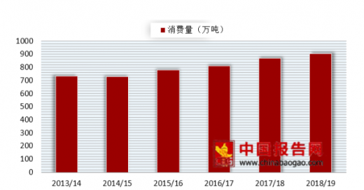 作为棉纺行业的原材料,棉花在2018/19年度我国棉花消费同比增长3.8%,消费量达到903.6万吨。