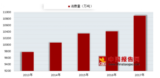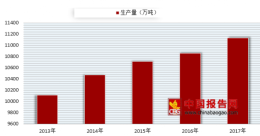 据数据显示,2017年全国纸及纸板生产量11130万吨,较上年增长2.53%;消费量10897万吨,较上年增长4.59%。2012-2017年,纸及纸板生产量和消费量年均增长率均为1.67%。