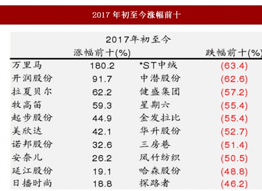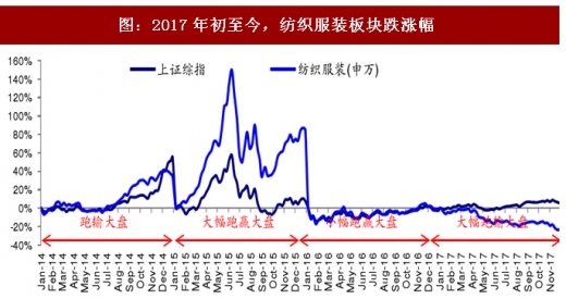 图:2017年初至今,纺织服装板块跌涨幅