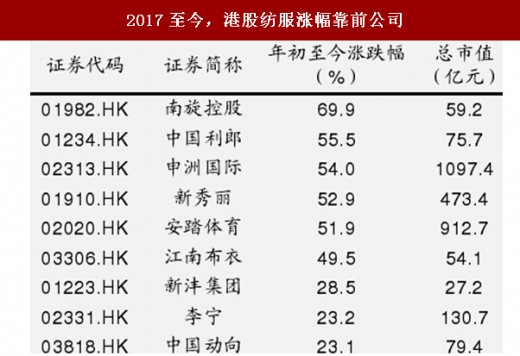 港股:业绩增速好,运动类为主,估值提升。