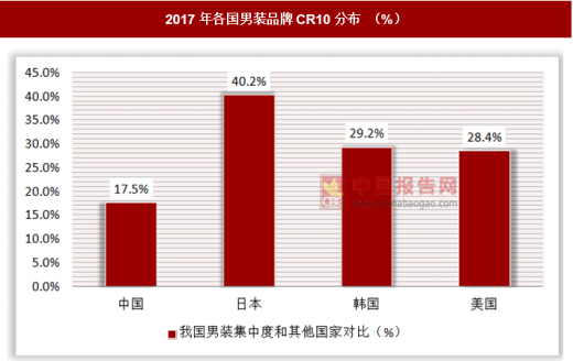 随着行业的发展,我国男装行业市场集中度逐年提高,cr10从2012 年的 12.9%到 2017 年的 17.5%,但从国际对比情况来看,我国男装市场集中度低于韩国、美国,远低于日本,说明我国男装公司仍有很大的集中度提升空间。同时,男装行业的单个品牌可覆盖目标消费群年龄跨度为 20-45岁,使得男装品牌获客成本较低,市场集中度较高。所以品牌建立和品牌宣传对于男装行业来说至关重要,以便于增加消费者的品牌忠诚度和品牌粘性。