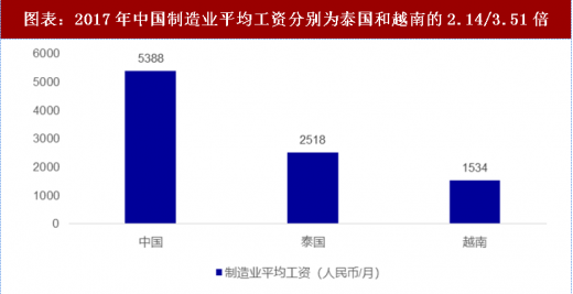 我国劳动力成本持续上升,人口红利优势逐渐丧失。21 世纪以来,中国平均工资逐年增长,增速加快。2017 年中国制造业平均工资达到 5388 元/月,分别为泰国和越南的 2.14/3.51 倍,中国劳动力成本优势逐渐丧失,世界制造工厂中心逐渐向东南亚等劳动力低成本地区转移,自动化改造升级迫在眉睫。