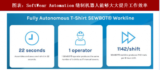 智能缝制工程柔性化程度高,有效实现去技能化。以中国最大服装制造商之一的天源服装有限公司为例,天源服装拟于 2018 年年初在美国投资 2000 万元建设 t 恤厂,该工厂采用自动化生产线,用美国自动化缝纫技术公司 softwear automation 生产 330 个机器人代替缝制工人,平均每件 t 恤成本 33 美分,将劳动力成本压缩至最低。机器换人在服装领域能够同时解决工人培养难度高、周期长与人力成本高企的难题,柔性化的智能缝制工厂是服装领域的重要发展趋势。