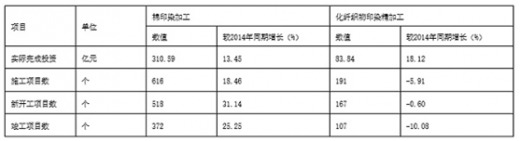 2015年1-11月份,印染企业500万元以上项目固定资产实际完成投资394.43亿元,同比增长14.41%,增速回落6.71个百分点。目前企业投资主要用于技术装备提升、环保设施提标改造、产品研究开发等方面。施工项目数807个,同比增长11.62%,增速回落4.06个百分点;新开工项目数685个,同比增长21.67%,增速提高6.30个百分点;竣工项目数479个,同比增长15.14%,增速回落71.41个百分点。虽然投资增速有所回落,2011-2015年印染企业实际完成投资额保持较快增长,2015年1-11月份较2011年同期增长123.5%。