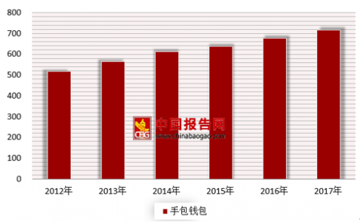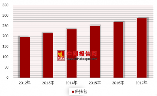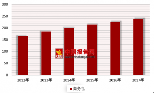 随着中国居民可支配收入增长、国内、境外的旅游需求崛起,我国包袋市场规模(不含行李箱)不断增长。根据数据显示,2017年我国包袋市场规模为1640亿元,2012-2017年年均复合增长率为7.8%。中国包袋市场2017年整体规模约1640亿元,相较于上年同期规模增长了6.8%。