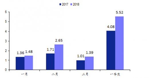 2018年1月电影票房49.5亿元,与上年度基本持平,主要系2017年1月覆盖春节档前四天导致基数较高;随后2018年春节档票房创新高,2月单月票房超过100亿,较去年的61.7亿同比增长64.3%;3月票房数据表现持续靓丽,同比增长44.5%达到48.7亿元。q1票房总收入近200亿,较去年同期增长38.3%(以含服务费票房为统一口径)。