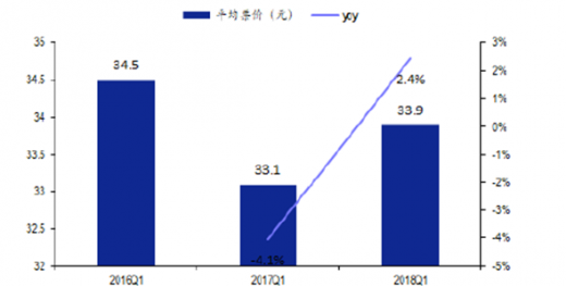 票房高增长的主要驱动力是观影人次增长。2018年q1总观影人次较2017年显著增长35.3%,达到5.52亿人次,1、2、3月分别同比增长8.8%、55%、37.6%。与此同时,2018q1的平均票价有所回升,从2017年同期的33.1元小幅上涨2.4%至33.9元。