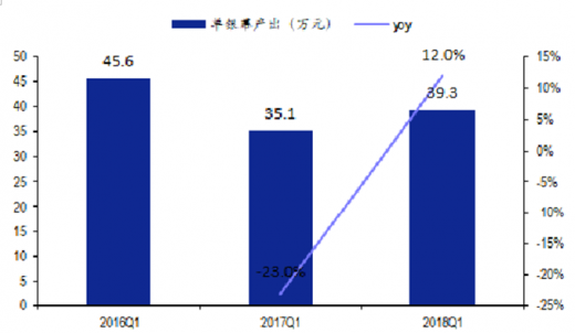 2018q1单银幕产出呈现同比上升趋势。我们以2017年年底行业统计的银幕数作为2018年年初的全国银幕概数,测算出近几年一季度的行业单银幕产出情况:2018q1单银幕产出同比增加12%,达到39.3万元。考虑到放映业务成本刚性,单银幕产出提高意味着毛利率的止跌回升,我们预计这一拐点也将体现在相关的一季报中。