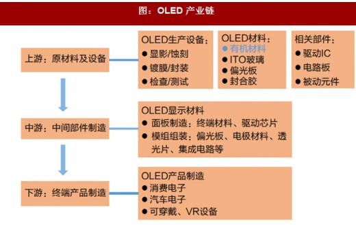 2017 年起oled 进入快速渗透期。需求端,从三星到apple 再到国产机,oled 是确定性大趋势,2016-2020 年oled 需求复合增速有望达到38.7%。有机发光材料是oled 上游制造核心环节,将受益于oled 崛起。