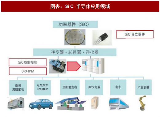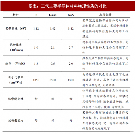 三大化合物半导体材料中,由于gaas产业化较早,目前占比最大,主要用于通讯领域,全球市场容量70-80亿美元,主要受益通信射频芯片升级尤其是pa(poweramplifier,功率放大器)驱动;gan大功率、高频性能更出色,主要应用于军事领域和新能源汽车充电器、逆变器;sic 可用与大功率高频功率半导体器件如igbt和mosfet,被广泛用于交流电机、变频器、照明电路、牵引传动领域。