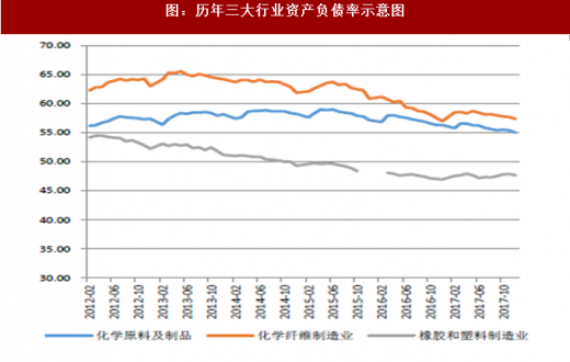 从行业资产负债率情况来看,化学原料及化学制品制造业、化学纤维制造业及橡胶和塑料制品业均处于长期缓慢下降趋势,企业杠杆逐渐降低。业绩增速相对较好的化学原料和化学制品制造业与化学纤维制造业负债率在17年均下降,而橡胶和塑料制品业负债率较为稳定。
