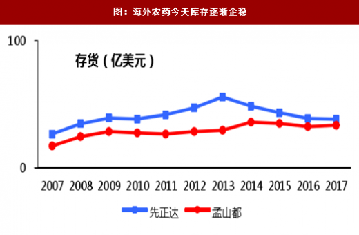 (2)占全球77%份额的海外6大农药巨头2014-2016持续3年的去库存任务完成,海外库存回补驱动需求回暖。