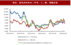 品种涤纶的原材料对二甲苯价格略有下跌,乙二醇价格上涨。截止 6月7日,对二甲苯的价格为 7540 元/吨,价格较上周下跌;乙二醇价格为 6970元/吨,较上周有所上涨。中间品聚酯切片的价格为 7700 元/吨,与上周持平。