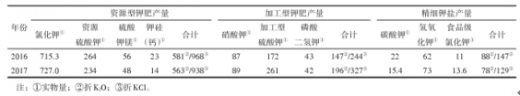 2017年我国钾肥总产量折以k2o为581万吨,折kcl为968万吨(已扣除重复量),比2016年的k2o563万吨(相当于kcl938万吨(扣除重复量))增长3.2%,2015年的产量(以kcl计)是952万吨。其中青海盐湖、藏格控股和国投罗钾产量之和占钾肥总产量的81.4%;青海盐湖和藏格控股氯化钾产量占总氯化钾产量的89.0%,国投罗钾的资源型硫酸钾产量占总资源型硫酸钾产量的65%。