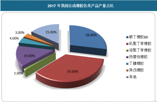 2017年国内合成橡胶市场整体发展低迷,装置平均开工率不足60%,其中丁苯橡胶、顺丁橡胶产量最大,分别占合成橡胶总产量的36%、28%。全年多数产品价格同比下跌20%以上。国内汽车及轮胎等行业增长较快,一定程度上带动合成橡胶需求增长。但产能的严重过剩,使得行业利润率大幅下降,装置停工、降负荷现象较多,整个合成橡胶行业进入周期性的低谷。