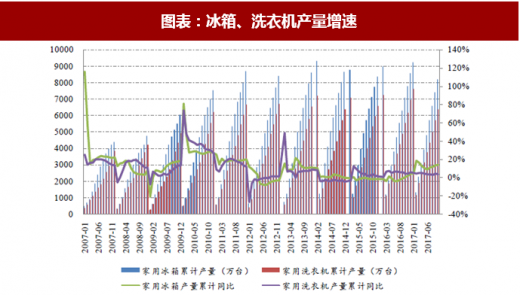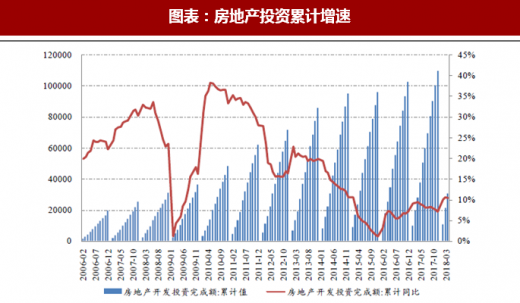 从下游主要行业的情况来看,房地产领域的需求有望保持稳定态势。受益于房地产市场的回暖,房地产新开工面积自 2015 年下半年以来迅速提升,2017 年趋于平稳。今年前 4 月,房地产开工和销售面积分别为 5.18 亿平方米和 4.22 亿平方米,同比增长 7.3%、1.3%,新开工面积增速同比有所提升。房地产固定资产投资增速方面,今年前 4 月,房地产固定资产投资 3.06 万亿元,同比增长 10.3%,同比提升 1 个百分点。目前核心城市房地产库存处于低位,未来在新型城镇化、公共租赁住房市场的推动下,房地产领域的投资有望保持平稳增长,对产业链上大宗化学品的需求带来保障。