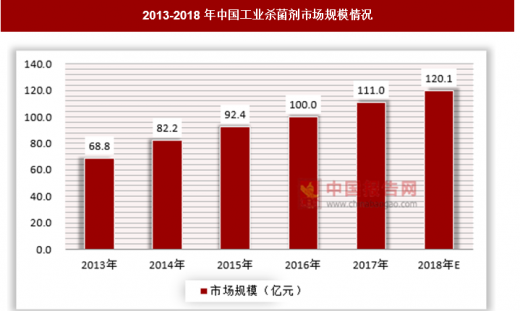 我国工业杀菌剂市场规模2017年达到了111亿元,相对于3%的市场规模增速来看,我国2017年增速超过了8%,因此,我国是全球工业杀菌剂市场增长最快的国家。